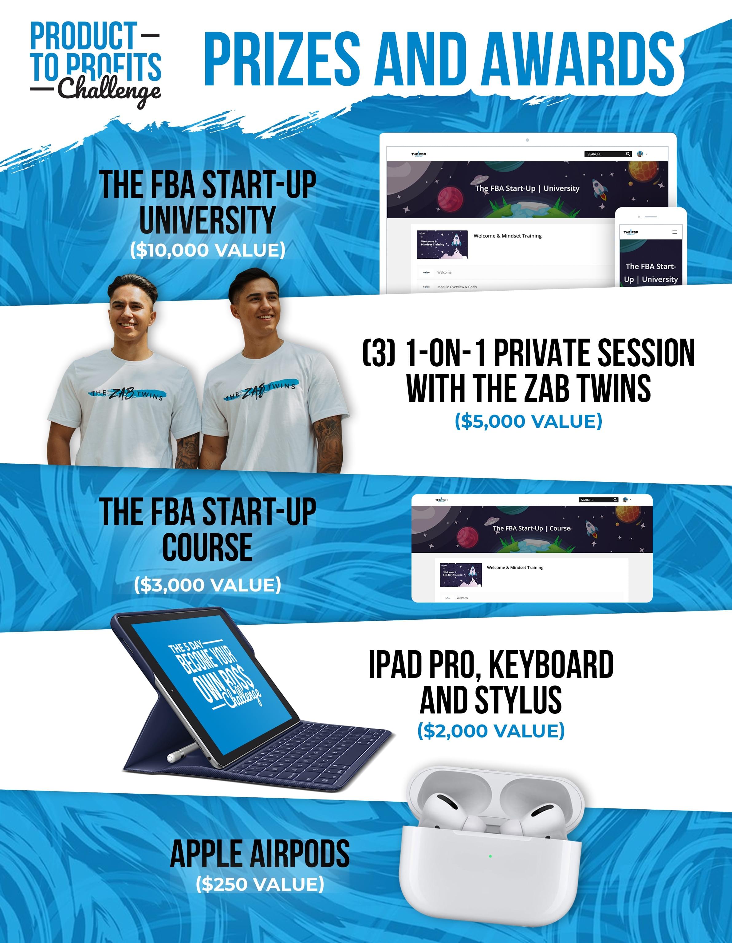 JOIN THE PRODUCT TO PROFITS CHALLENGE NOW FOR YOUR CHANCE TO WIN ONE OF THESE INCREDIBLE GIFTS IN OUR $20k PRIZE PACKAGE